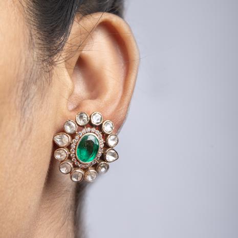Radiant Ruby and Sparkling Moissanite Chand Bali with Jhumka