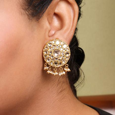 Ruby, Emerald, and Moissanite Jhumka with Dangling Pearls