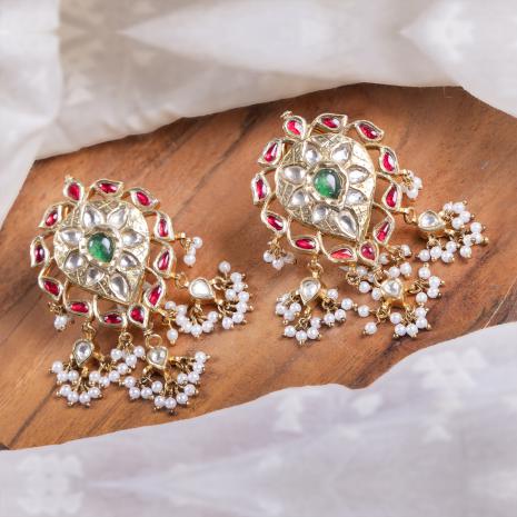 Radiant Ruby and Sparkling Moissanite Chand Bali with Jhumka