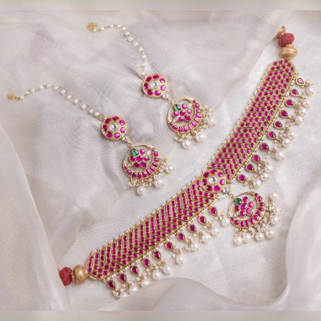 Verdant Radiance: The Ruby, Emerald & Pearl Leaf Necklace