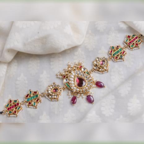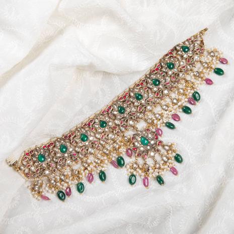 Verdant Radiance: The Ruby, Emerald & Pearl Leaf Necklace